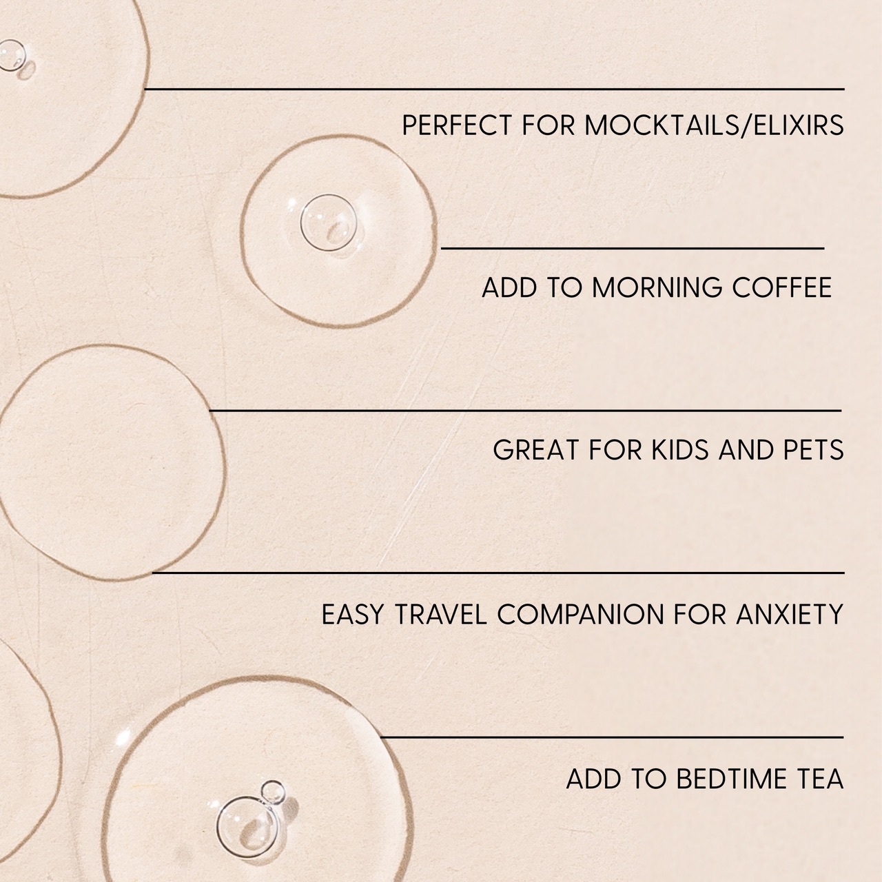 Dosage: Apply 1 to 5 pumps under the tongue. Begin with 1 pump and increase based on your body's response. For anxiety and sleep, consistency matters more than quantity. A daily low dose compounds more effectively than occasional high doses.