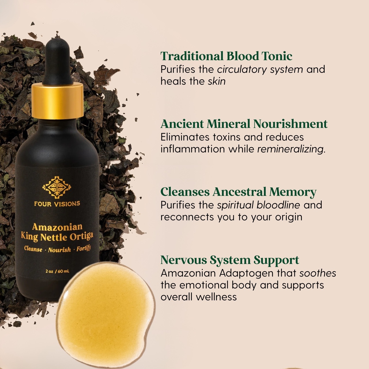 Amazonian King Nettle Ortiga stinging nettle tincture is the medicine potent to touch the deepest pain. Not the symptom. To your blood. To the root. To the layer where your ancestral memory lives and where it can finally, with the right plant ally, begin to release.